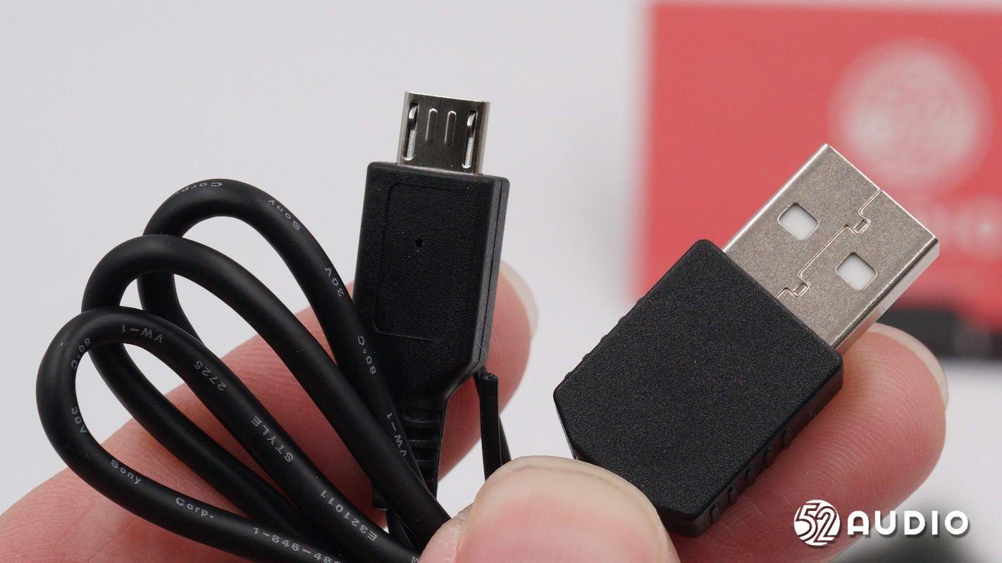 充电线采用了USB-A to 双USB-C接口,能够同时为接收器和发射器充电。