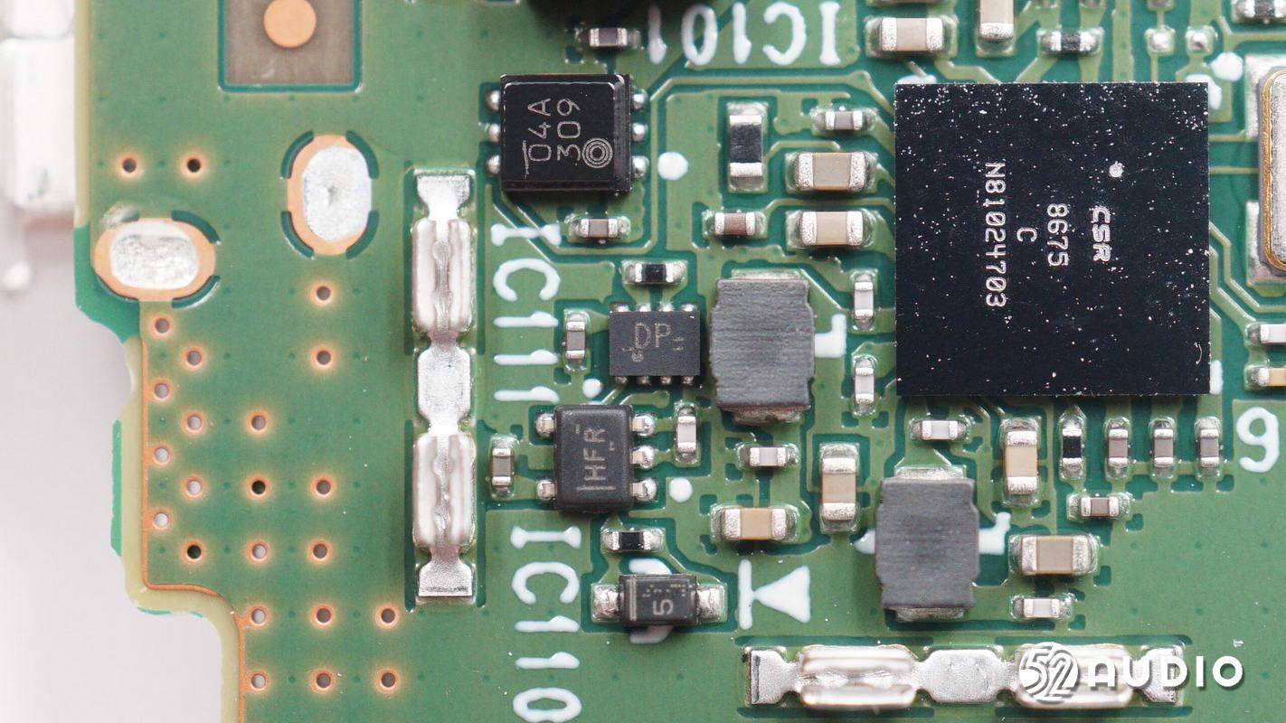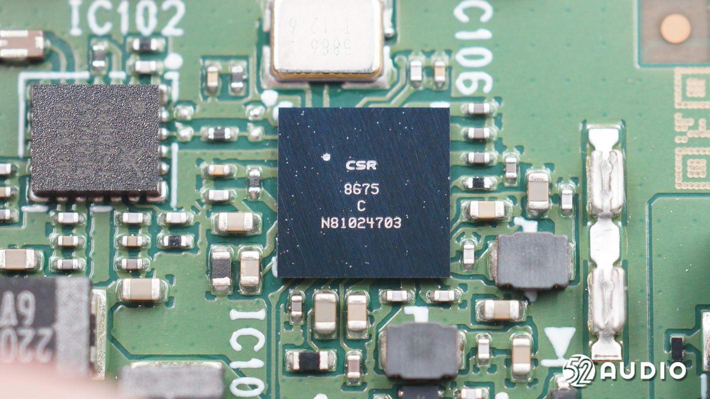 内部配置方面,接收器采用Qualcomm高通CSR8675单芯片蓝牙音频SoC,支持蓝牙4.2,支持模拟和数字拾音器,内置高通Kalimba DSP,支持主动降噪,无需外部元件,可以为内置锂电池提供200mA的充电电流。