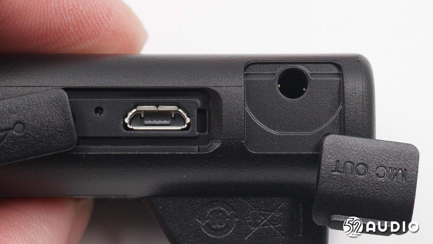 机身右侧设置有3.5mm TRS相机连接端口和监听接口。