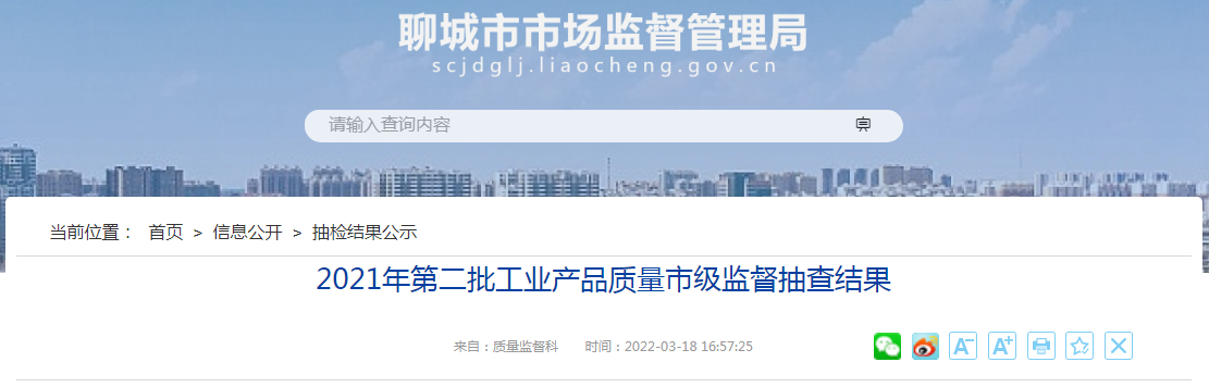山东省聊城市公布2021年第二批产品质量市级监督抽查结果(节水型器具)