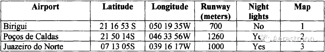 巴西发放中心位于Sao Paulo州东部的Cachoeira Paulista(南纬22°4'2";西经044°58'41"),它包括以下设施:一个机库大楼、一个遥测大楼和一个用于发放中等尺寸气球的发放台,体积小于30万m3(dos Santos,1993)。Cachoeira Paulista的跑道有400米长,允许夜间发放。在春夏季节,从11月到3月,可以从这个气球地点开展气球飞行活动。在秋冬季节,可以从几个内陆城市的机场和良好的交通道路进行发放。几个内陆机场有必要的设施,为转场飞行提供支持,允许持续数天的飞行。由于其大陆性的尺寸和温和的冬季,巴西可以在广泛的纬度范围内提供全年的气球活动,范围从24度到南纬7度。表1显示了巴西几个城市的机场名单,这些机场适合气球活动,并且已经被用于气球发放。该表还显示了机场跑道的长度和在这些地点进行夜间发放的可能性。地图一栏显示了在图1的地图中的位置。