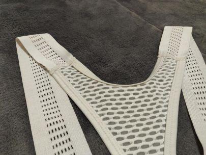 无缝压胶的高弹网眼布面料背带,贴合身体的同时提供了超强的透气性。