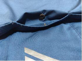 美中不足:我对于自己认可的品牌就会有特别的期望。不过这个也是大多数骑行服都有的问题,后口袋采用松紧设计,每一次出去骑车的时候,手机都在里面不安的滑动,特别是过减速带的时候,第一考虑的肯定是手机从口袋里跳出来就完了。想过自己加拉链,觉得影响颜值而放弃,不过加一粒暗扣确实是个不错的选择,既保证了物品不会掉出来,也不影响放置水壶,觉得这个方法不错的骑友可以学起来。