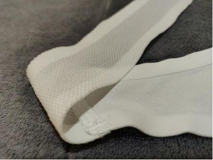 前襟衣摆没有防滑材质,整件衣服的都有环绕的硅胶条,朴实的硅胶却恰如其分的能骑行裤的面料产生奇妙的反映,防滑效果很好。