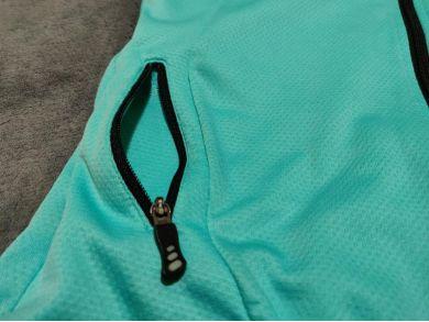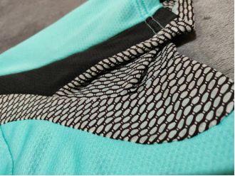 整个面料非常柔软舒服,腋下拼接网眼十分的透气舒服。色彩上以蓝色为主辅以黑色点缀,怎么搭配骑行裤都不会出错。