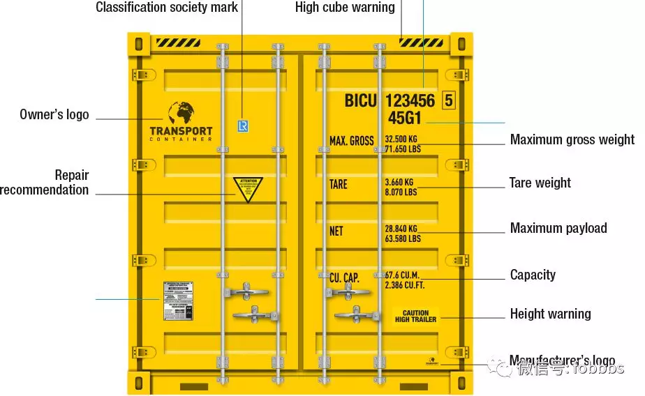 以上的对话是一位朋友问我,当时我回答他很仔细,内容也很多,所以没有详细写了,因为在下面打算详细介绍一下集装箱的标记呗。(小编补充了集装箱示意图在下面)