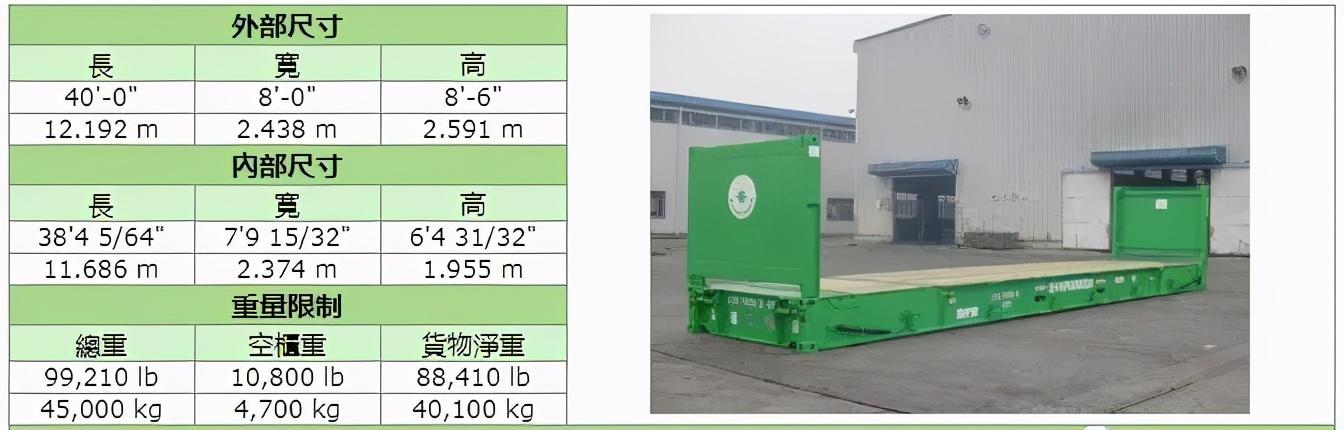8.40FR(板框式折叠平板)适用:框架集装箱通常适用于超大号的货物