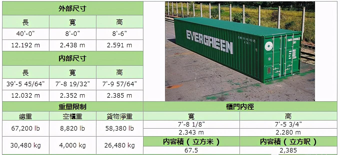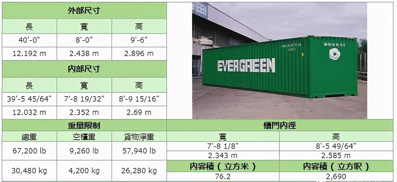 2)箱型代码第一字母为“H”都是普通集装箱,High表示高的。