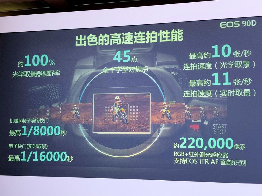 另外,在使用光学取景器或实时取景模式拍摄时,借助DIGIC 8数字影像处理器的高速影像数据处理能力,最高连拍速度分别提升至约10张/秒以及11张/秒,已经十分接近EOS高端专业级单反相机的连拍性能,在拍摄包括体育赛事、舞台舞蹈、飞鸟等题材时能从容应对。