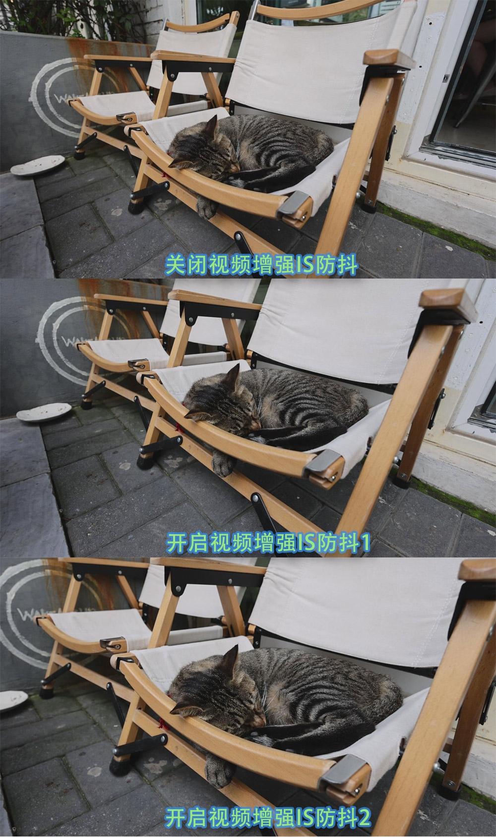 通过视频截图对比可以看到,即使是开启了画面损失最多的视频增强防抖模式2,画面中的元素依旧不会显得过于紧凑,所以这支镜头对视频博主来说有着相当大的可用性。