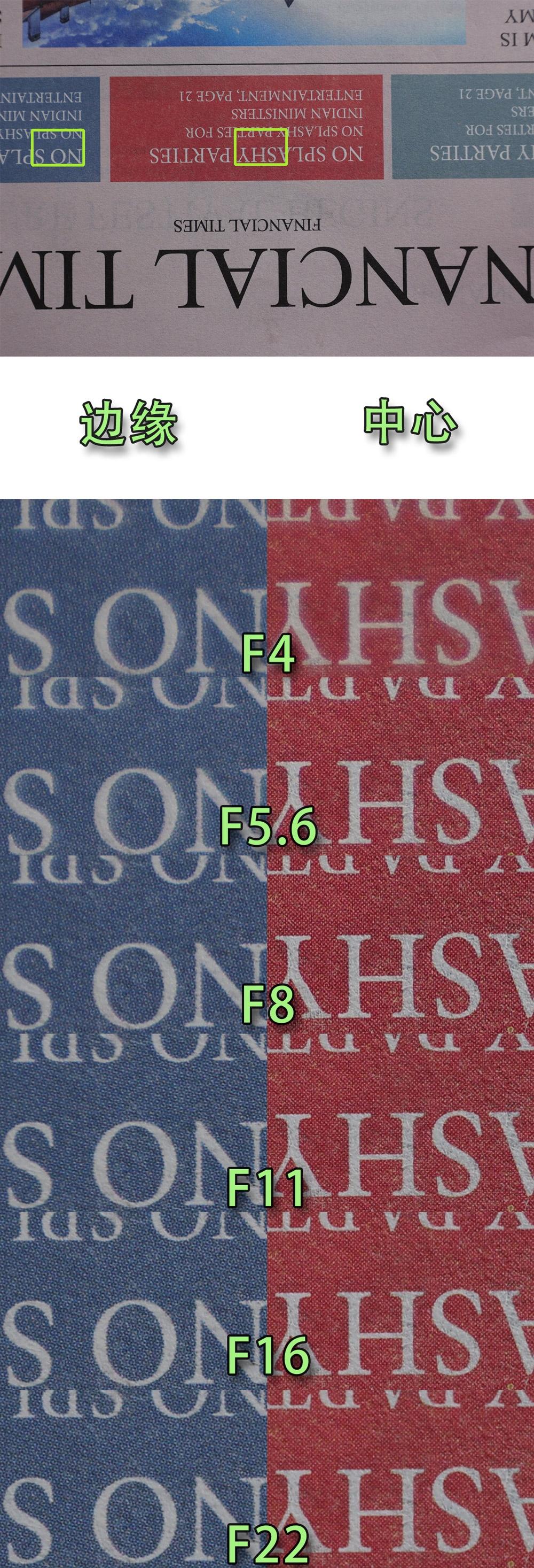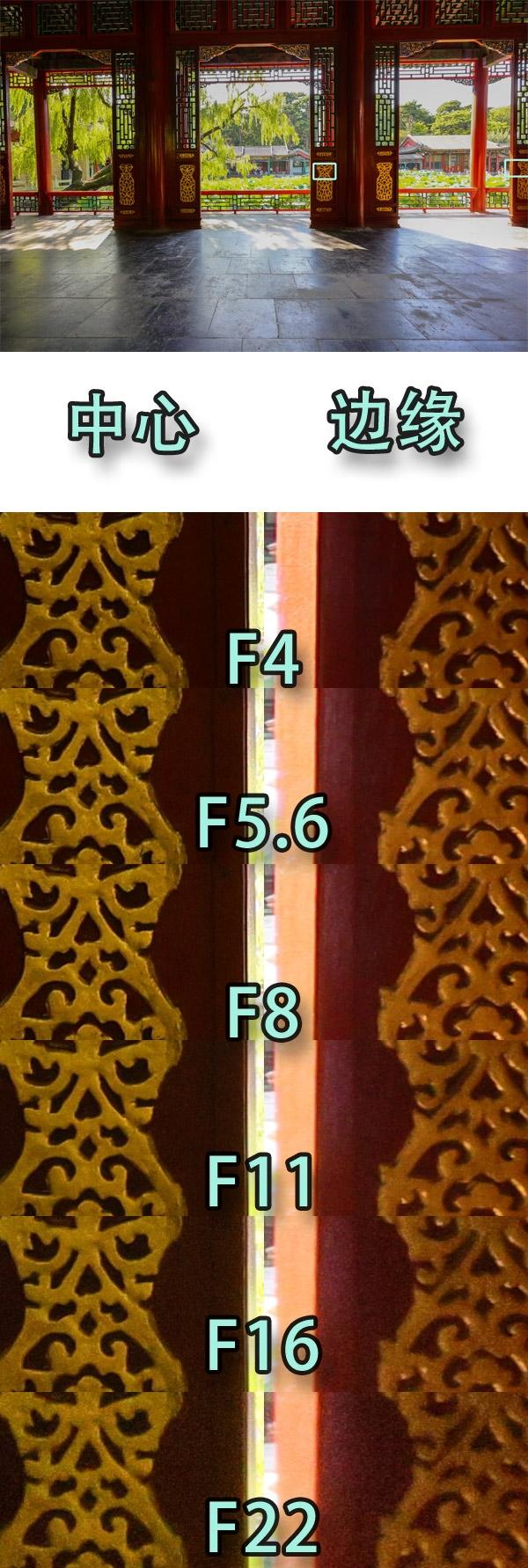 而在35mm端,最大光圈下这支镜头的边缘画质有了很大的提升,中心画质也比较优秀,在光圈收小一档以后,即达到最佳画质,虽然从F16开始边缘出现了轻微的画质下降,但在F22时依旧有不错的画质表现。