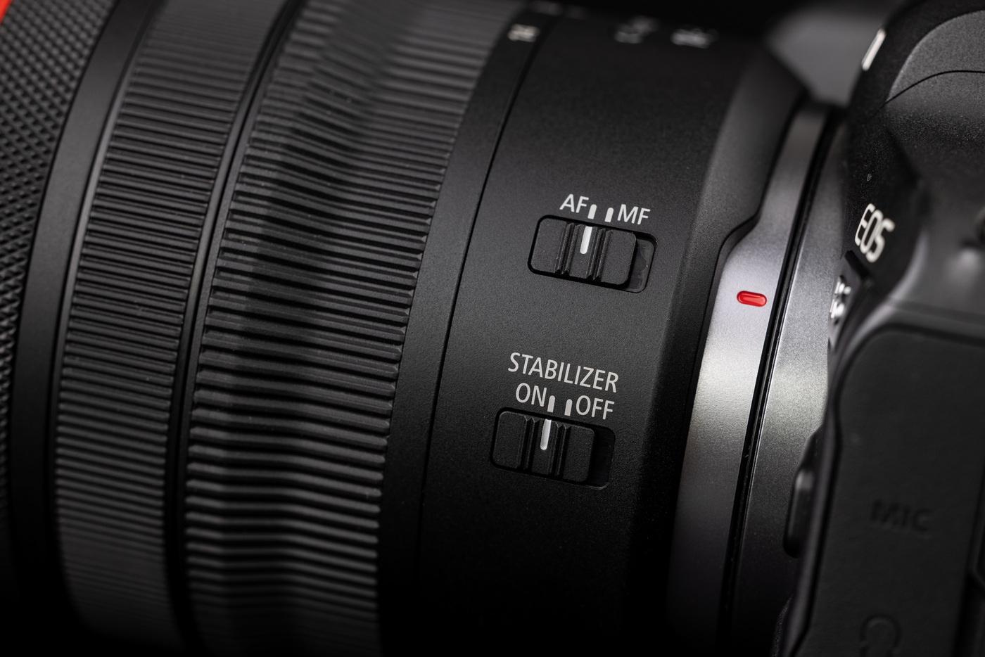 镜身按钮方面,只有两个按钮,分别是手自动对焦切换按钮和防抖开关按钮,操作简单明了,除了传统的对焦环和变焦环,这支镜头同样配有作为RF镜头的特征之一的镜头控制环,可以根据使用需求自定义控制环功能,从而实现在观察取景器的同时进行更加直观和快速的调整和拍摄。