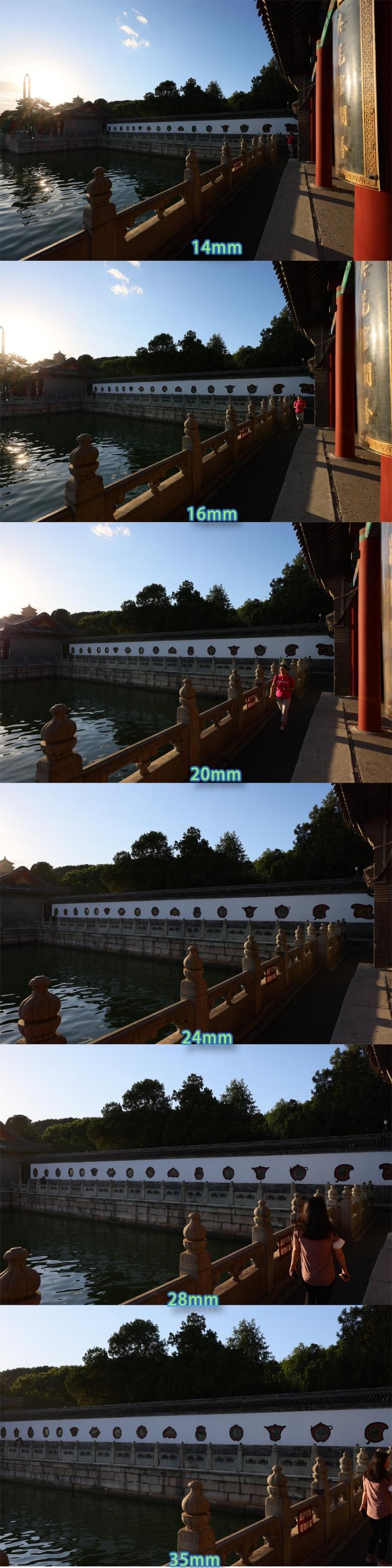 RF14-35mm F4 L IS USM的焦距覆盖了14mm、20mm、24mm、28mm、35mm等常用焦段,无论拍摄风光、建筑、室内,还是街拍快照、环境人像,都可以充分展现影像作品的视觉表现力,接下来我们再来看看这支镜头各个焦段之间的视角区别。