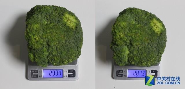 西兰花重量由293.4g降至287.3g,重量下降6.1g,失水率为2.1%