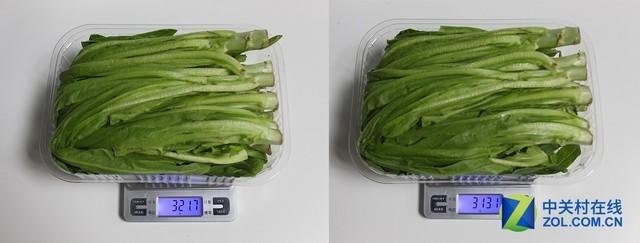 青菜重量由321.7g降至313.1g,重量下降8.6g,失水率为2.7%