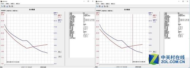 制冷是冰箱最核心的技术指标,一款冰箱无论拥有什么样的智能功能、什么样的保鲜技术,没有良好的制冷效果,一切功能都是水中月镜中花。制冷速度快的冰箱,能够快速降低食材温度,延长食材的保鲜期。为了精准测得冰箱的制冷能力,我们使用专业测试仪器进行测试,首先将冰箱断电,清空冰箱内部所有食材,恢复至室温装填,用温度记录仪分别放置于冷藏室和冷冻室,连续记录温度变化。