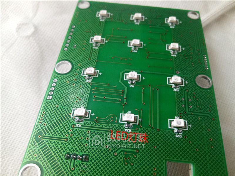 各个接口有:电机,指纹,扬声器,电池,触摸板,在主线路板下面还有一块触摸线路板,超高亮的贴片LED灯板组成。
