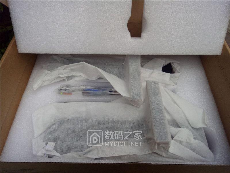 下面一层就是面板部件以及一些小配件。面板部件保护的很到位,棉质布套加上外部的保丽龙包裹着,在运输过程中丝毫不会损伤到本体。