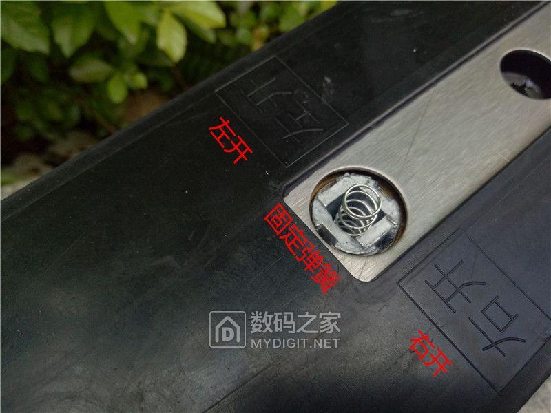 中间区域有一个固定弹簧用来紧固插入到这里的拉手方钢。左开/右开很容易理解。看看你家的大门朝向是哪一边呢?拉手朝向左边还是右边都可以进行调节。