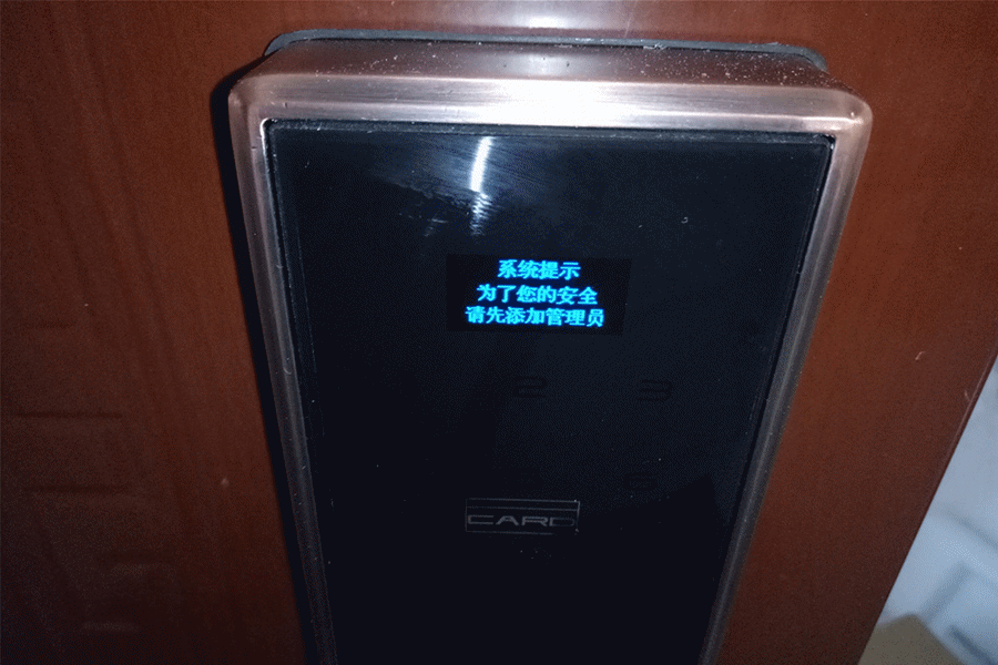 当恢复到出厂模式后的智能锁初次使用需要添加管理员用户。短按面板#号键,然后通过数字键2.8进行上下调整进入用户管理界面,选择到添加管理,按#键进入添加指纹,输入ID号,系统默认从0001开始,系统连续采集同一个指纹两次,管理员指纹添加成功。如果跳过这个步骤,在系统内没有管理员的情况下,会一直有语音提示:“为了您的安全请先添加管理员”。同样方法可以添加管理员密码。密码设置为6~10位数字。添加普通用户指纹,密码如上述描述步骤。建议用户有多少根手指都收集一下。