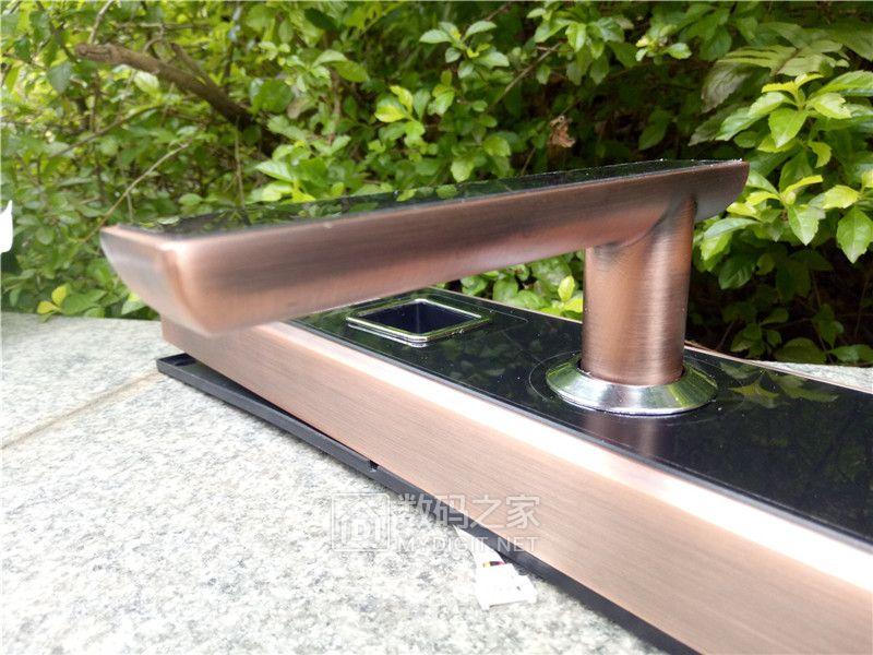 在面板下方可以看到铜质的外接电池触点以及一个机械锁孔。这两个功能可以这么解释一下,外接电池的存在可以极大方便了用户。想想看,假如你出差公务或者旅游度假一年半载才回来,门锁内的电池早已失效,没电怎么开门呢?不用担心,去商超买一颗9V叠层电池,通过这个小小的外接电池触点提供电源给门锁。开门进屋后再换掉内置的电池就可以了。另外一个机械锁孔,通过附送的三把机械钥匙可以轻松打开房门。这个机械锁采用的是C级叶片锁设计,理论上此类的叶片锁通过技术开锁方式打开需要不少于270分钟时间。机械锁孔有正面和底部两种方式。推荐各位考虑后者方式吧!而我也是选择了后者隐藏式,这是因为想要通过技术开锁难度是难上加难,想一想这个画面:弯腰,下蹲,抬头,举手。长时间保持这样的姿势捣鼓破坏一把锁头。假如你是小偷的话,你累不?偷偷的告诉你隔壁老王家的锁可是普通锁具哦,还是趁早换一家吧!