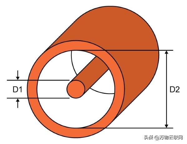 在继续进行之前,我们要弄清楚,并不是每个高频系统或组件都针对50Ω设计的。可以选择其他值,实际上75Ω阻抗仍然很常见;同轴电缆的特性阻抗与其外径(D2)与内径(D1)之比的自然对数成正比。