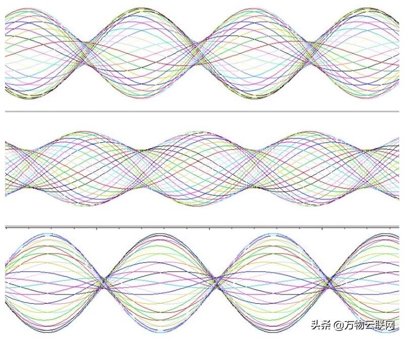三种VSWR情况下的波形图:更大的阻抗失配会导致沿驻波的最高振幅位置和最低振幅位置之间的差异更大