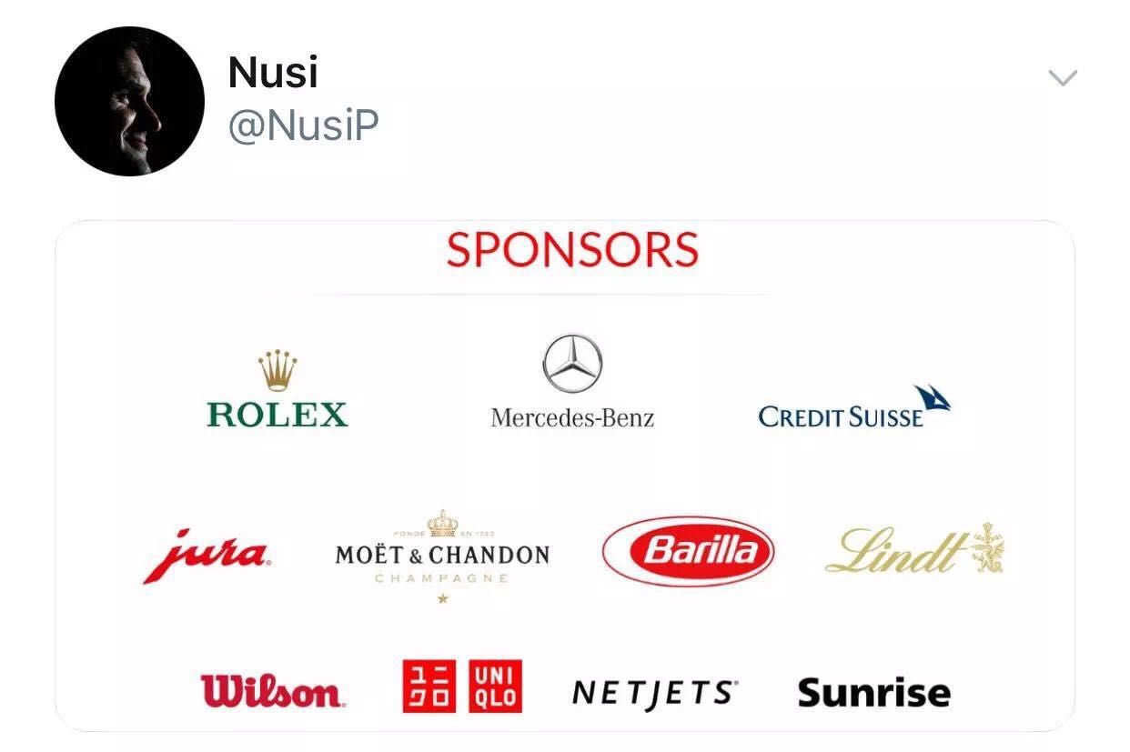 ▲费德勒官方球迷会整理的费德勒最新赞助名单