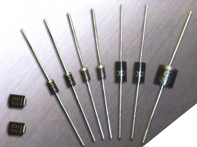 3. 肖特基二极管(SBD) ----全称为肖特基势垒二极管,它属于低电压、低功耗、大电流、超高速半导体功率器件,其反向恢复时间可小到几纳秒,正向导通压降仅为0.4V左右,整流电流可达几十至几百安培。特别适合做开关电源充电器低压输出电路中的整流二极管、续流二极管。