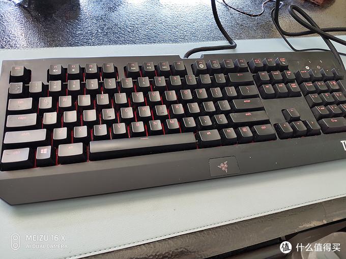 这是我第一把雷蛇键盘,采用的是凯华和雷蛇共同研发的绿轴,手感方面的口碑不错,类似于段落感略弱一点的青轴,在比较清脆的基础上触底更加的顺畅。这把键盘只有红光而且也没有什么灯效可以变换,类肤质的涂层键帽表面细腻,对按键手感也有不错的加成。
