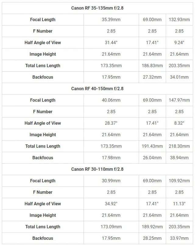 佳能RF35-135mm f/2.8专利曝光,该专利展示了一种高性能的RF大光圈变焦镜头的光学设计,该镜头可能是L级。