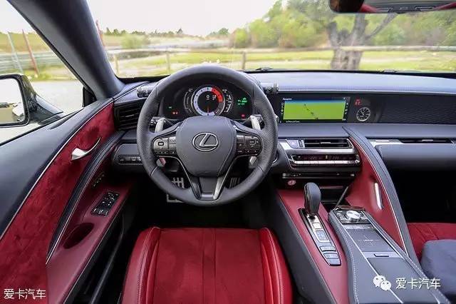 雷克萨斯LC的驾驶舱空间规划,驾驶席与副驾驶席并重的概念被凸显出来。这里所描述的“并重”,并不是将中控台设计成对称格局那么“敷衍”,而是将空间的切分与整理推向一个全新的层面。当我们以驾驶席视角去观察,可以感受到强烈的以驾驶席为中心的UI设计思路,驾驶者的臀部被设置在靠近车辆重心的位置。