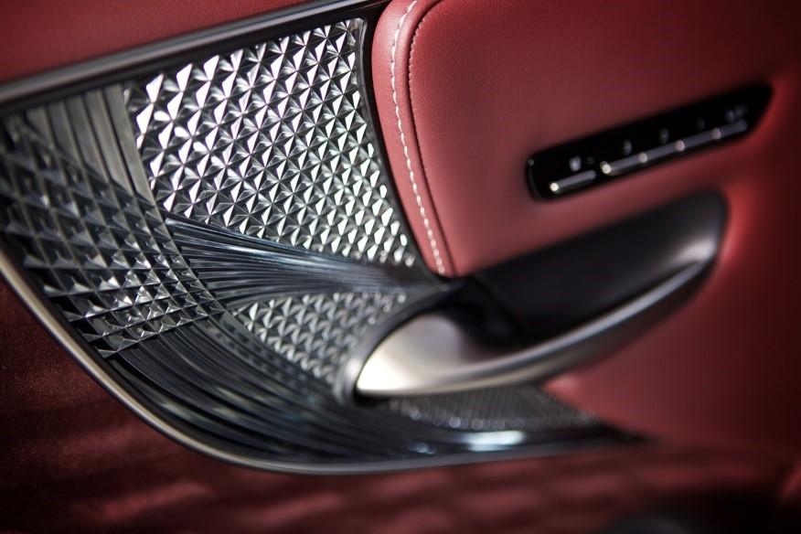 与“鹤羽折布”相搭配的,则是被雷克萨斯称为“凌光切子”的内饰板,这一设计灵感来自传承于江户时代的 Kiriko 切子玻璃器皿,作为世界上第一个将玻璃装饰引入汽车内饰的品牌,雷克萨斯将传统手工技艺和现代科技很好地结合在一起。