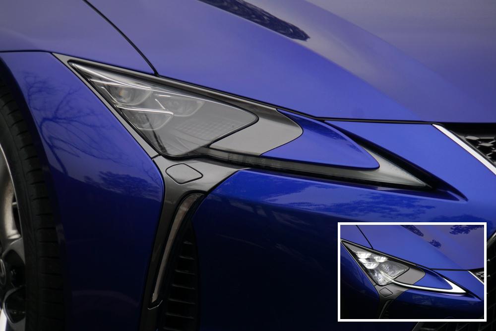 为了保持低矮的发动机舱盖造型与巨大的轮圈尺寸,雷克萨斯的工程师开发了超薄投射结构的三眼式LED头灯单元。