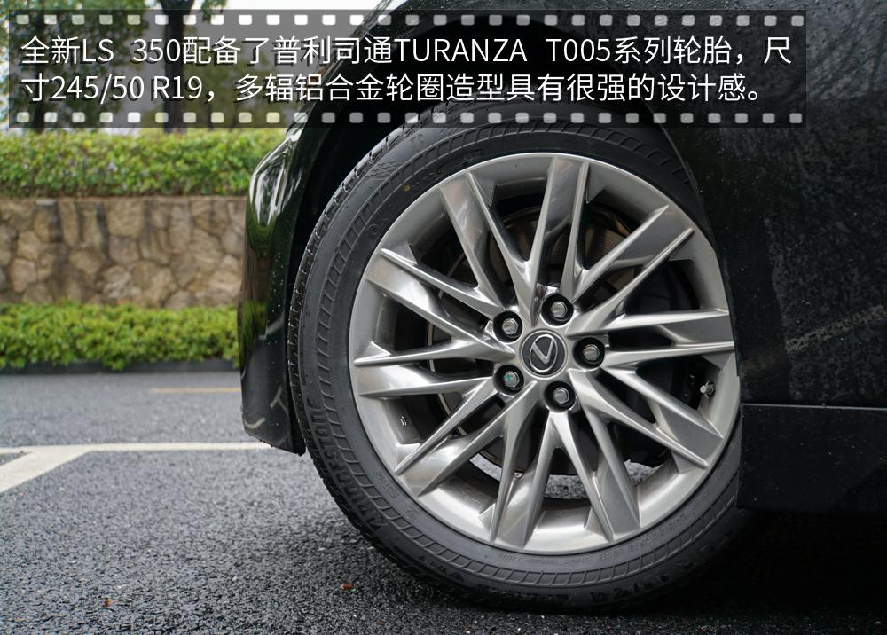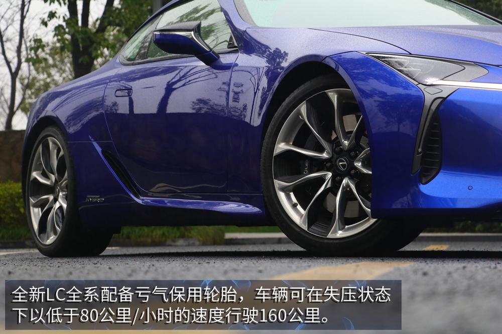 试驾车型配备了21英寸锻造轮圈,轮胎尺寸为:前轮245/40 RF21、后轮275/35 RF21,供应商为米其林。值得一提的是,普利司通等品牌也同样为雷克萨斯LC提供专属规格的轮胎。