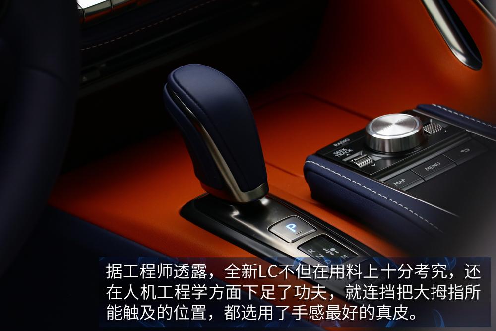 好马配好鞍,为了打造豪华跑车中最美、最舒适的座椅,全新LC的团队历时超过两年时间、经过了50个原型座椅的试验之后,最终成就了理想的座椅设计。采用独特的两段式构造,座椅靠背的主要部分覆盖在座椅的肩部区域并围绕背部包裹起来,不仅实现视觉上的立体感与设计感,更为肩部提供额外的支撑。座垫的造型则确保对骨盆的良好支撑,均匀分配受力面积,让驾驶者在坐下来后,能基于“自我调整”的概念达到高舒适度。
