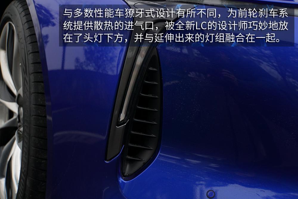 全新LC如同网状被上下拉开的镀铬纺锤形格栅带来强烈的视觉张力,独特的头灯设计由箭头状排列的独立日间行车灯和超薄投射结构的三眼式LED头灯单元组成。凭借超薄的头灯设计,设计师们打造出了更低的发动机舱和前悬。
