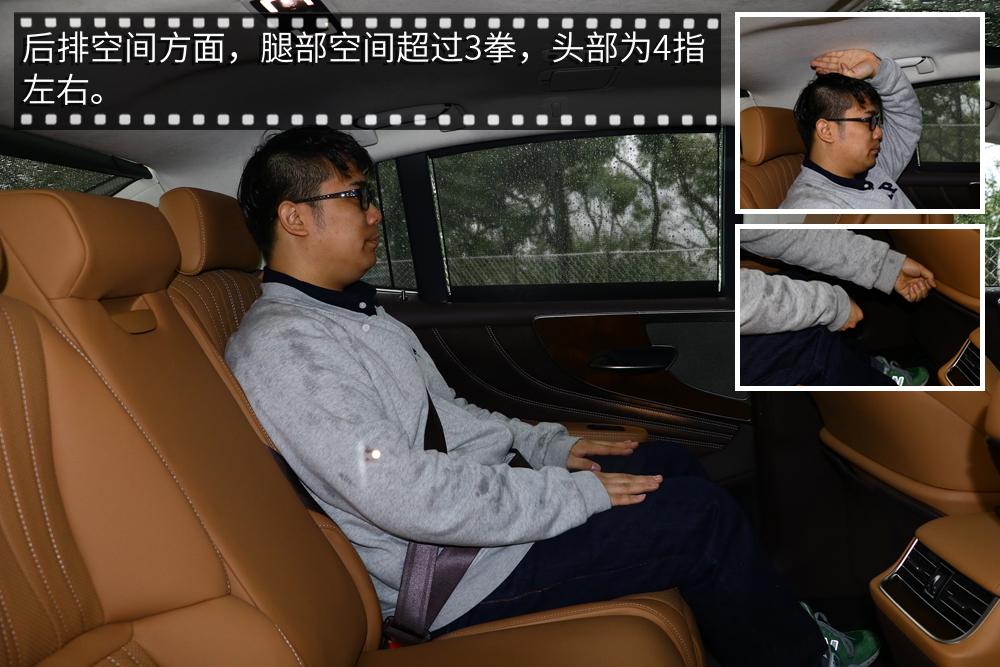 身高185cm的体验者,在正常驾驶姿态下,将前排座椅调整至最低状态,头部空间约为四指。进入后排可以看到,头部空间受到车顶造型的影响,膝部空间也捉襟见肘。