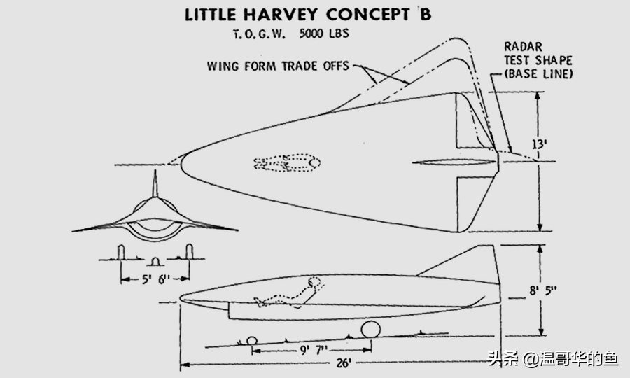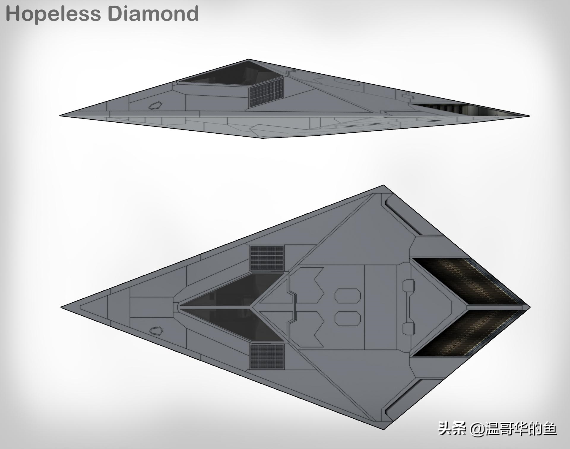 1975年5月,“臭鼬工厂”完成了一份《高隐身性概念研究进展2号报告》的内部文件,阐述了绰号为“Little Harvey - 小哈维 ”的研究计划,它包含了两种对比方案,A计划是被戏称为“Hopeless Diamond - 无望钻石 ”的钻石切割多面体设计(这个名字来自世界上现存最大的蓝色钻石 “Hope Diamond - 希望钻石”,因为实在不像能飞起来的样子而被说了反话),由“臭鼬工厂”时任董事长本·里奇设计,无尾设计惊世骇俗。