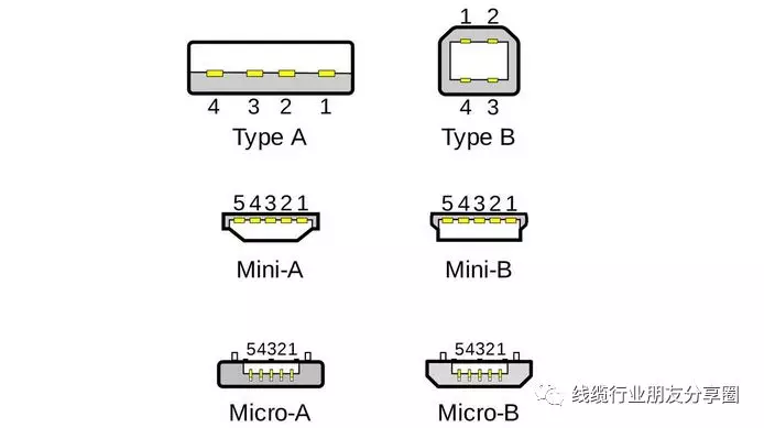 USB Type A:该标准一般适用于个人电脑PC中,是应用于最广泛的接口标准