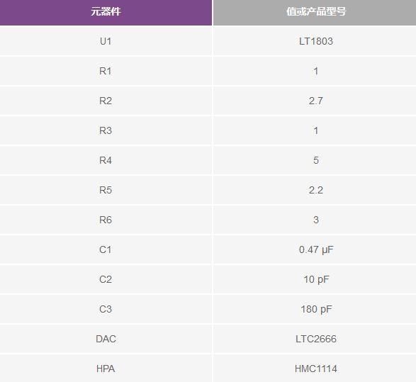 表1. 所用元器件值