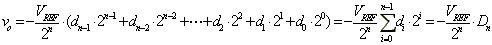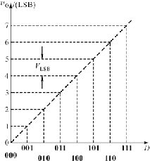 图中输出模拟量的最小增量VLSB表示输入数字量中最低位为“1”时的模拟电压大小。