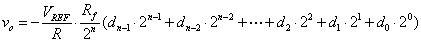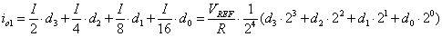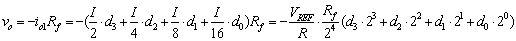 。当输入二进制数的某一位高电平时,对应支路的电流流向反相端,反之流向地。因此流向反相端的电流有: