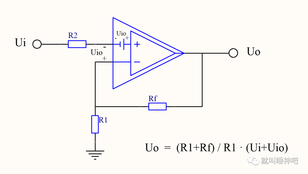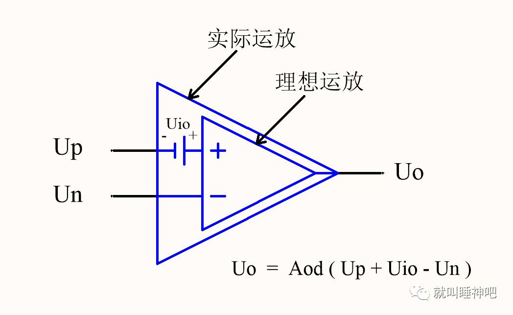 上面说到负反馈最终会使得Un跟随Up,考虑到输入失调电压,实际上这时候两个输入端之间总是存在一个微小的电压,这个电压就是输入失调电压。
