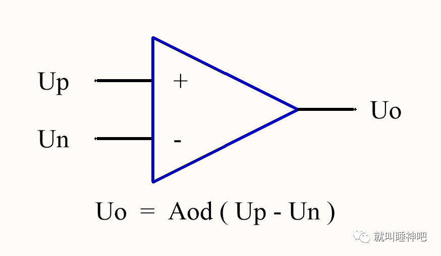 运放本身是一个差分输入的高增益多级放大电路。因为它具有极高的开环差模放大倍数(记为Aod,从几万倍到上千万倍不等),所以当运放工作在线性区时,只要它的反相输入端和同相输入端之间有一个微小的电压就足以产生所需的输出电压(两个输入端之间的电压称为差模输入电压,记为Uid)。如果忽略这个电压,就可以近似地认为反相输入端电压与同相输入端电压相等,即Un=Up,好像它们之间短路一样,称为“虚短”。又因为运放具有极低的输入偏置电流(记为Iib,通常为pA至nA级别),所以在分析运放构成的放大电路时,往往可以忽略这个电流,认为没有电流流进运放,就好像输入端断开一样,称为“虚断”。