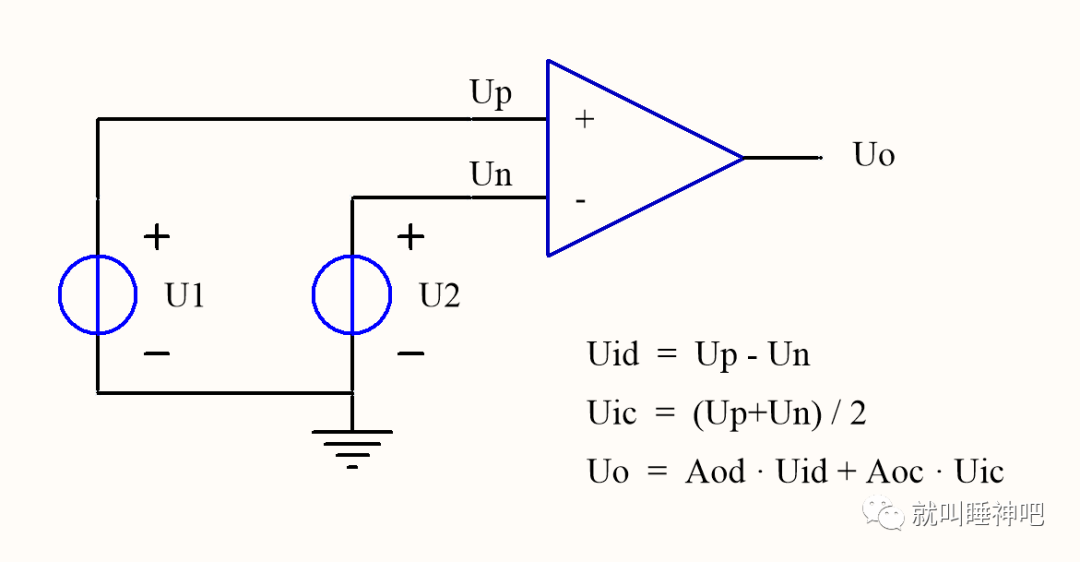但这不是因为运放对共模输入信号有放大作用,即使运放的共模放大倍数真的为零,这个电路的输出电压依然含有U2。决定放大电路输出电压的是“虚短”、“虚断”以及KCL、KVL对电路各电压电流的约束关系 ,即输出电压只能是那个通过反馈电路加载到反相输入端的电压等于同相输入端电压的值。
