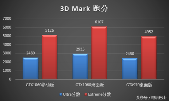 我们可以看到,Ultra下GTX1060移动版分数为2489,桌面版为2935;而txreeme下移动版分数为5126,桌面版分数为6107。而上代桌面版GTX970的Ultra跑分仅为2430,Extreme跑分也仅为4952。