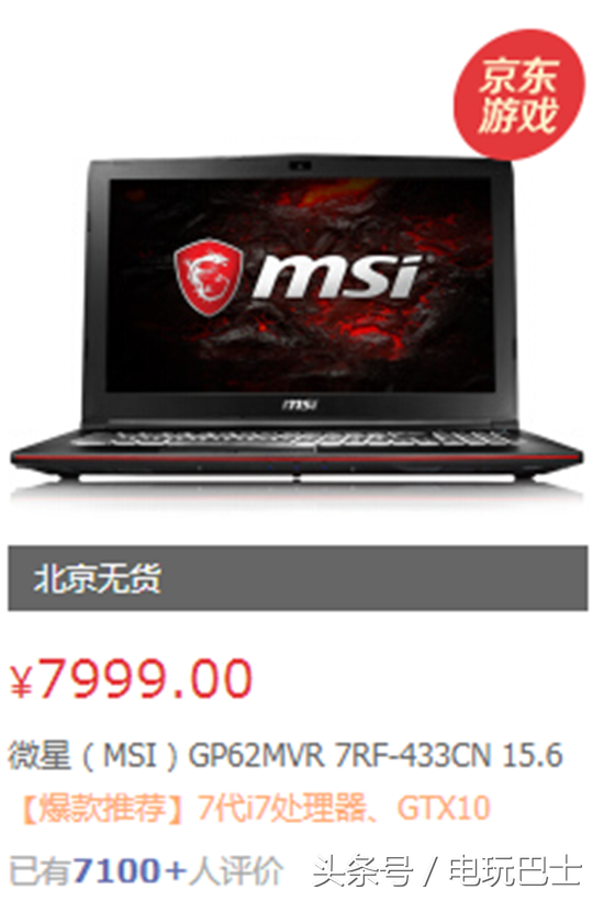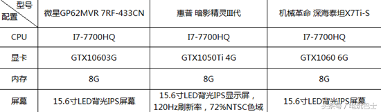 这款笔记本采用的是15.6寸LED背光IPS屏幕,内置I7-7700HQ处理器,8G内存,1T机械硬盘+256G SSD,GTX10603G版显卡,京东售价7999元。