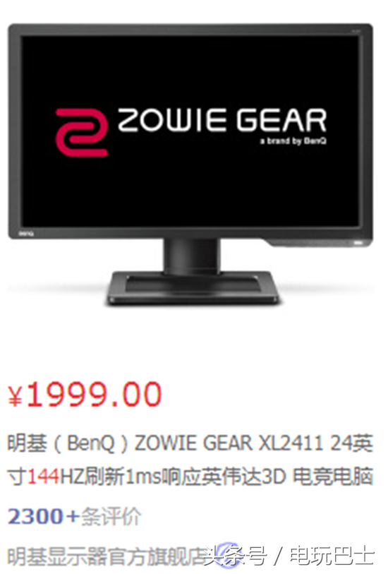 因为我们之前选出作为对比的笔记本电脑都是游戏向的,我们的目的很明确,就是打游戏,所以显示器我选择这款明基ZOWIE GEAR XL2411 24寸显示器。