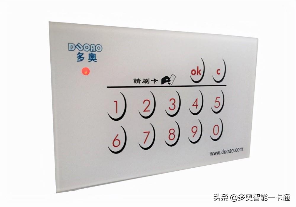 酒店管理人员在忘带卡的情况下,通过在 “多奥纯玻璃电容触摸密码读卡器”上输入指定楼层号和密码,也可进入指定楼层。(注:每层可根据酒店管理人员需要凭管理卡设定不同的密码,密码的设定与修改只能由酒店方自已完成,无需通过多奥厂家。)
